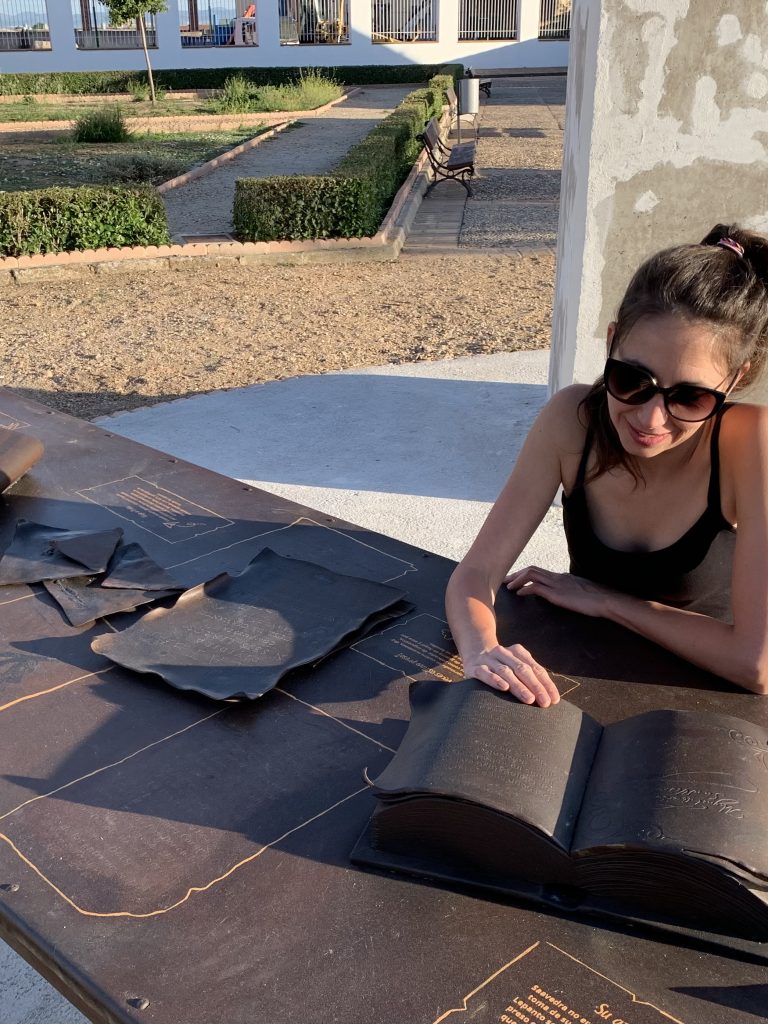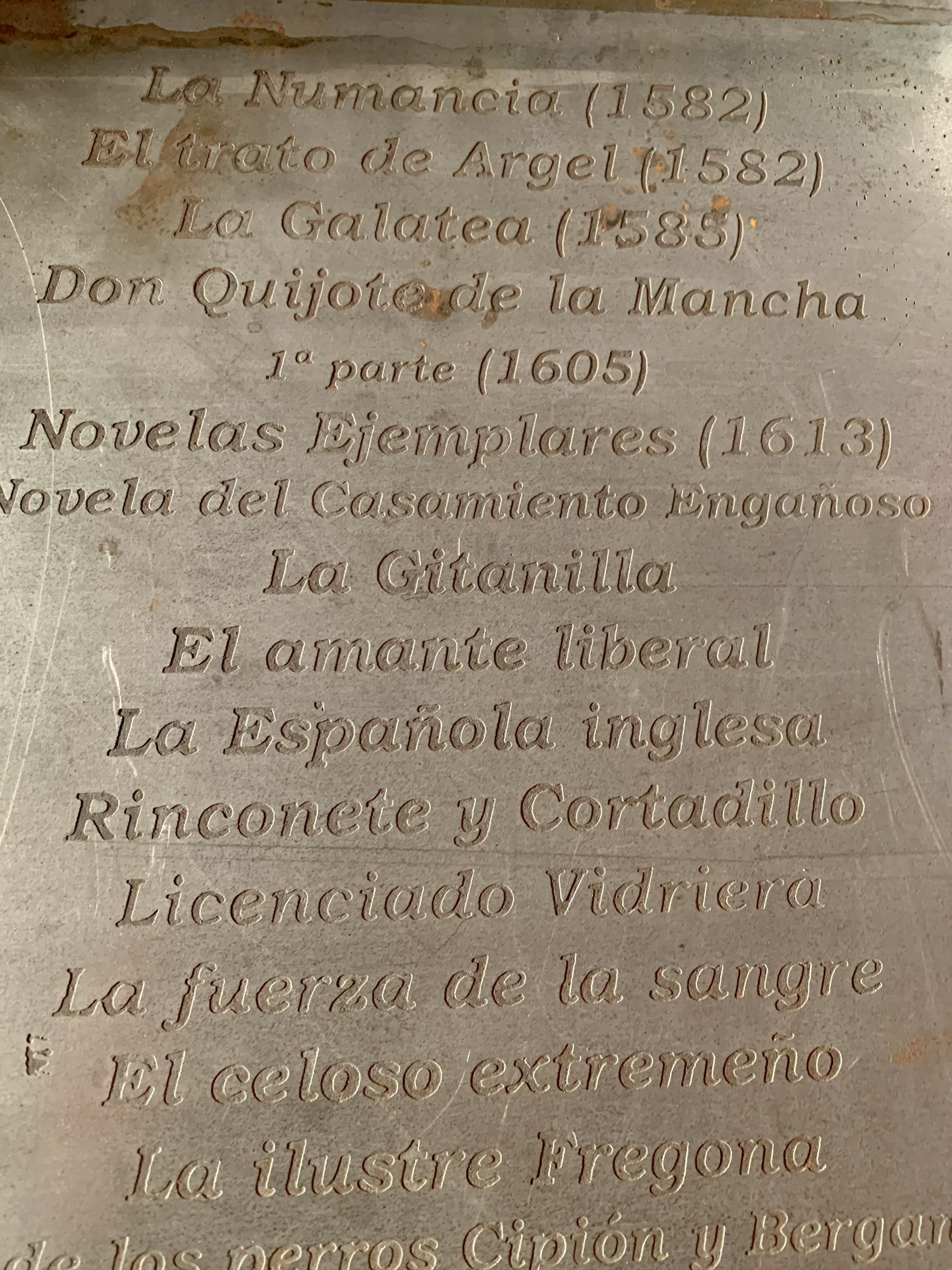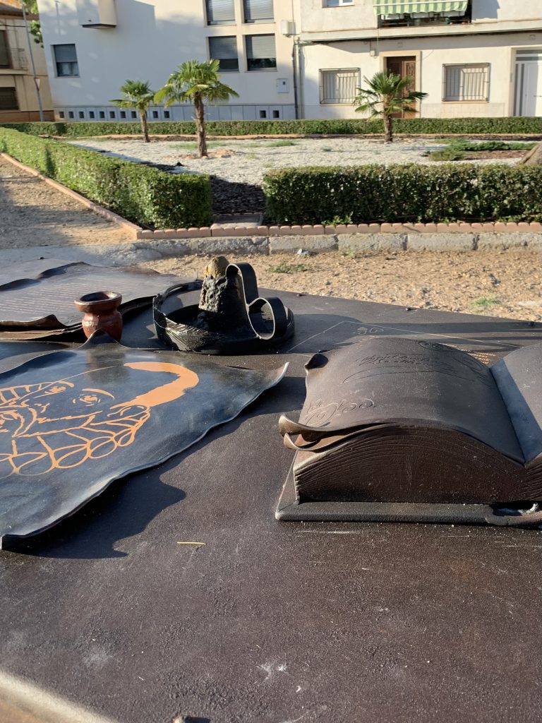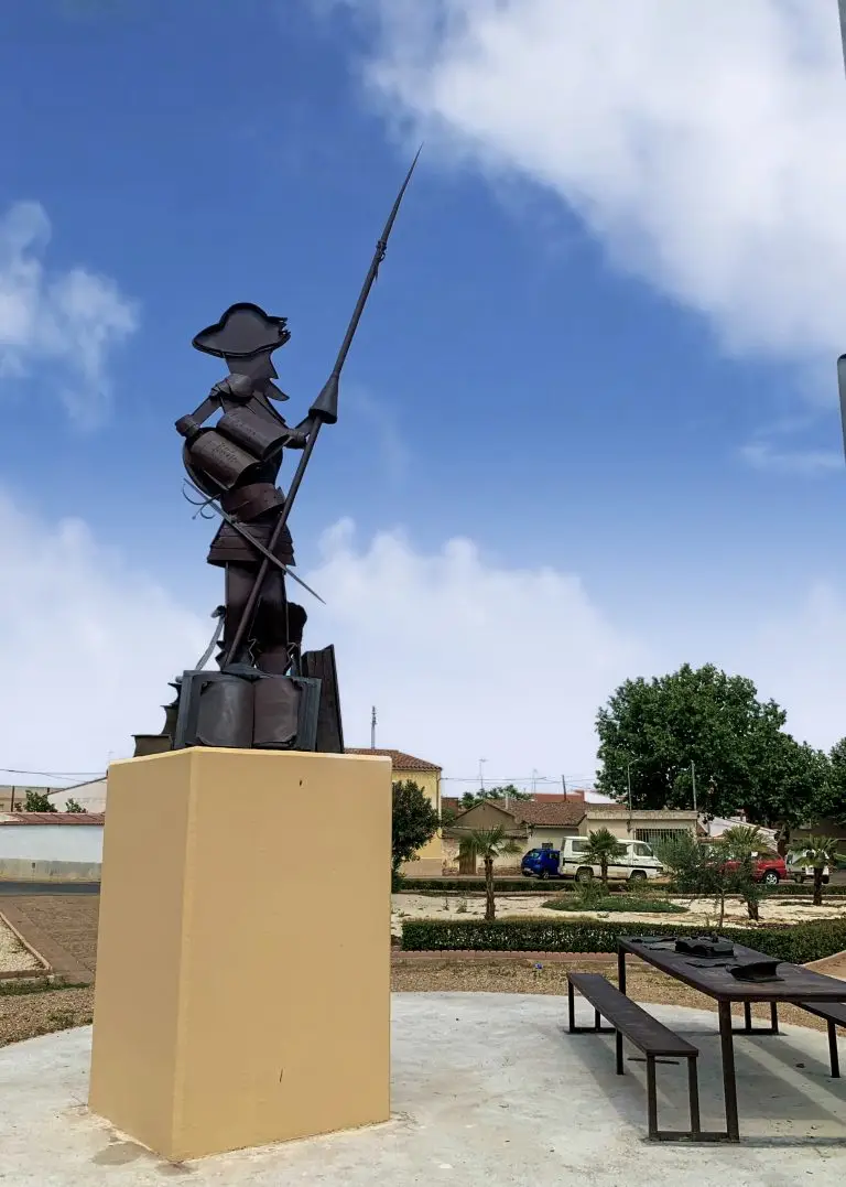 Escultura de Don Quijote en hierro con pátina de oxidación.