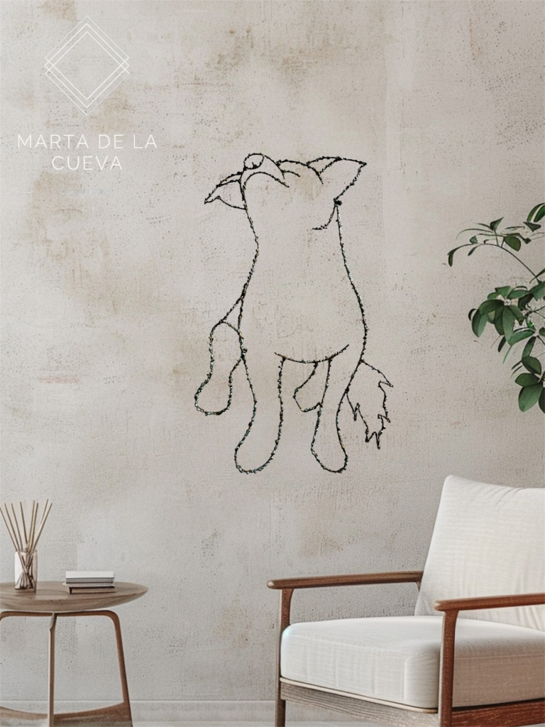 Escultura en varilla de un perro y un gato